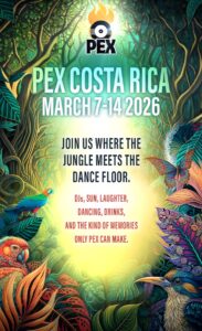 MARCH 7th-14th in COSTA RICA You are invited to Join the International PEX Phamily in beautiful Costa Rica March 7th-14th 2026. During the week, we will be organizing DJ events, daytime pool parties, barbecue, daily yoga classes, a sound healing journey, and beach and waterfall excursions. We will also provide information for friends interested in […]